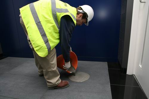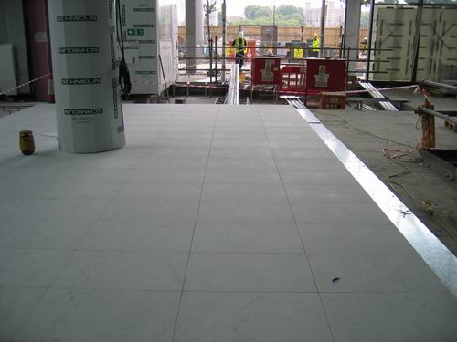 Approx 4000m2 of Technik Floor™ has been specified for use within the lift lobbies on both the Tower and FAB buildings. Pedang Dark and Shanxi Black granites from China have been selected for incorporation in to the prefabricated system. The average panel size designed for the project is 1000mm * 550mm and then granite thickness applied to the system being only 15mm. As at October 2006 the installation is approx 90% complete and significantly ahead of programme. The installation is due to be complete by early December 2006.